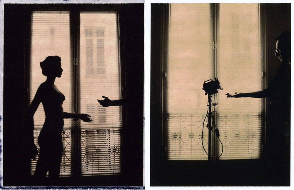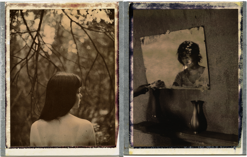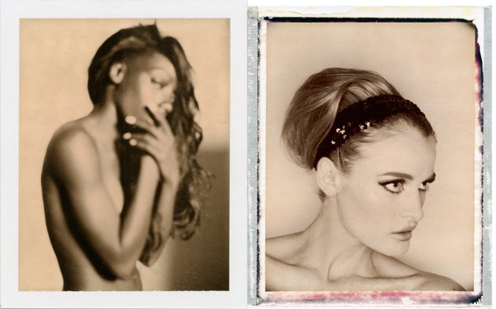 一般情况我们拍摄8x10相纸的时候,先将负片装入片夹,装机正常拍摄,然后将正片放到处理器中(处理器有手摇和电动式两种)——就像其他小尺寸的宝丽来撕拉片一样,8x10的正片顶部也包含了两个药包。当我们运行处理器的时候,滚轴会把药包挤爆,然后把药水平均布满整个相纸幅面——这个过程就像我们平时拍撕拉片抽相纸那样,只不过8x10这么大尺寸的撕拉片我们用处理器来加工以保证药水处理均匀。所以宝丽来“巧克力工艺”就是用彩色负片感光,然后和黑白相纸正片上的药水包一块处理。彩片的彩色成色在黑白药包的化学物质中反应,从负片转移到正片上。在巴黎的摄影师Paolo Roversi和Cathleen Naundorf利用这种工艺创作了很多作品。