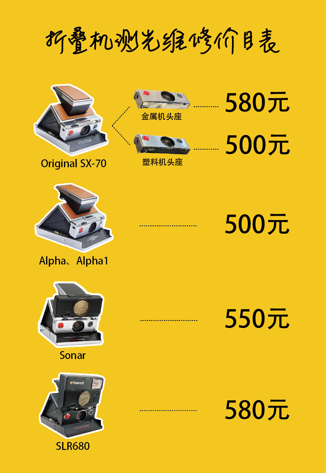 如果你的70系折叠机有测光不准的困扰,如果你需要维修,可联系本社客服。根据机型不同,维修价格如下表: