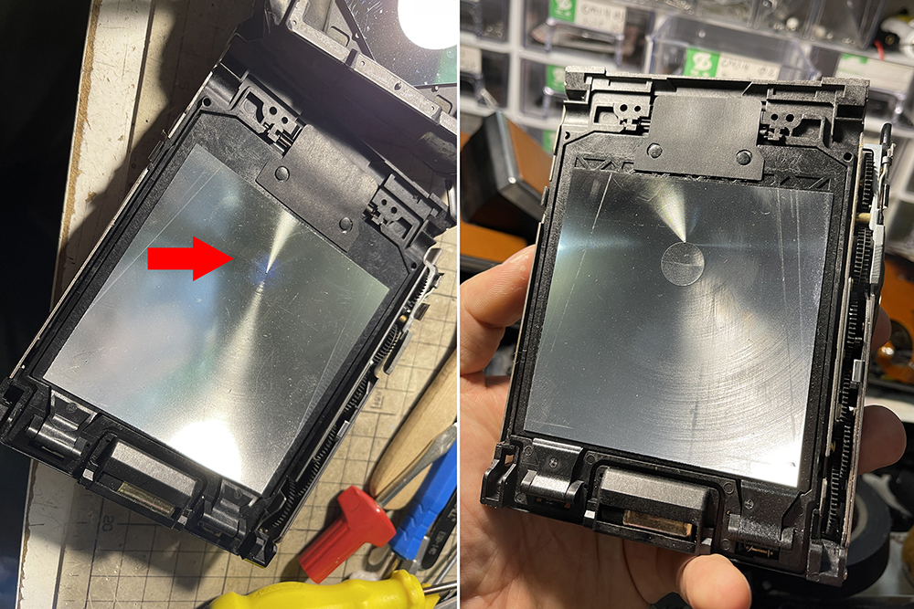 拆下来的成像反光板可以看到没明显的黑点(镀层氧化)