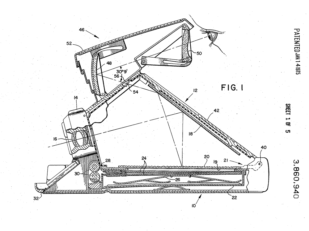 16(图上序号)镜头、20涅菲尔反光屏、18取景反光板、54透镜、48反光凹镜、50取景窗透镜。
