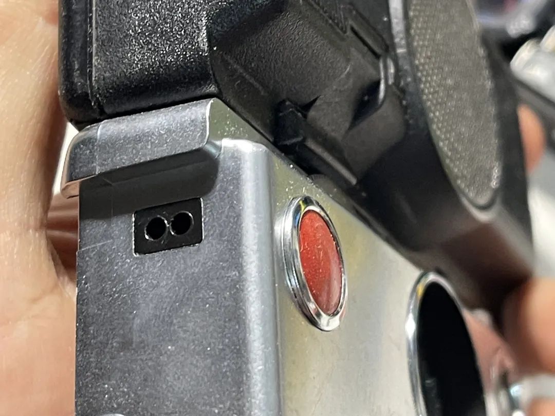 红色快门就不用说了,旁边那个接口是快门线接口,无线快门也是这样插上去的。