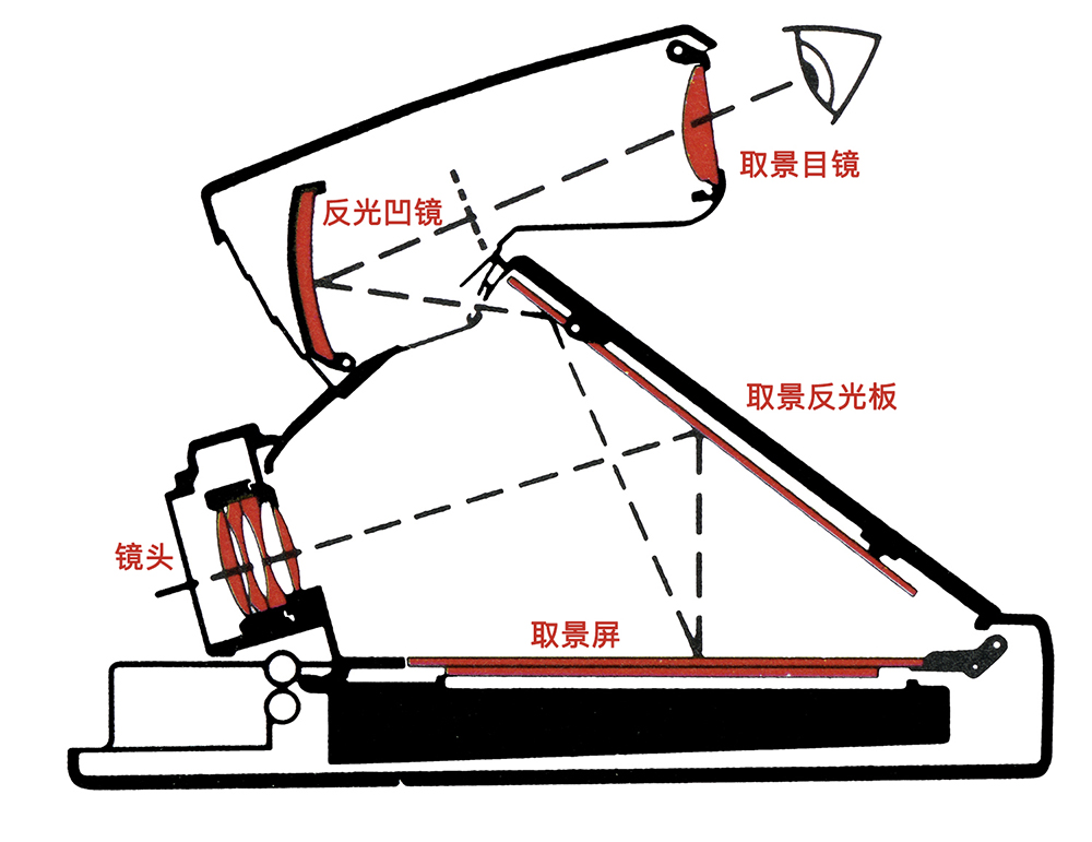 按快门——光圈闭合,同时反光板(实际上是取景屏)弹起,取景黑掉——测光元件测光(极短的时间)——测光组件给信号,光圈打开,相纸开始感光——感光完毕,光圈关闭,反光板落下,同时相纸被推出——吐片完毕,同时光圈打开,取景恢复视野。
