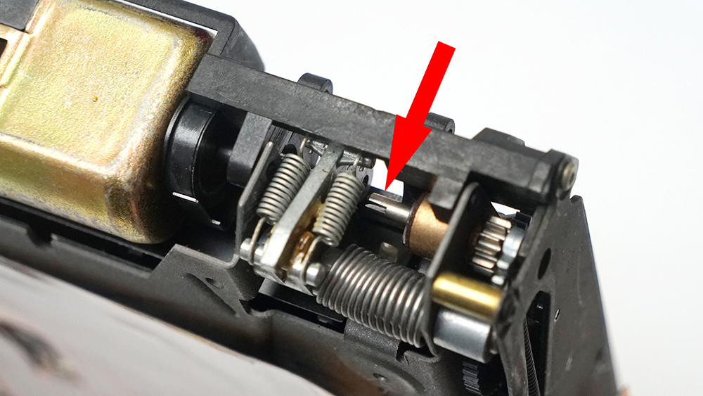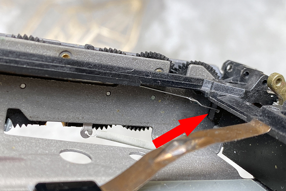 推片是否能正常复位。机身右侧的主齿轮盖条掀起来就能看到推片钩。