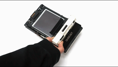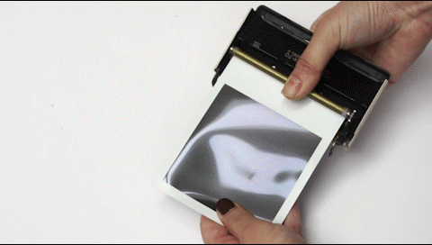 SX-70内部工作状态差不多解释清楚了,最后附送一个小彩蛋。前面本来想演示一下相纸推出时,药水被碾出来的画面,结果发现SX-70设计太好,这个过程完全被挡住,只能手动演示一下了。把相机下巴拿下来,用一张没有碾过的相纸手动挤一下。