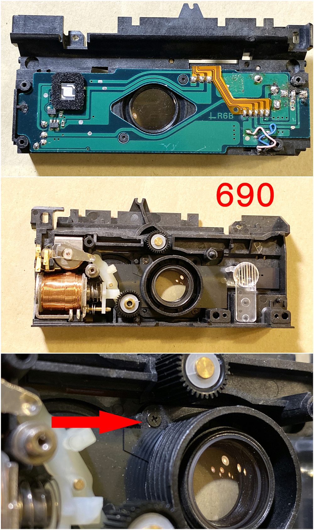 但是在690机身内部印有两个日期:一个是在机头后盖内的对焦齿轮铁板上,一个是在镜头壳内侧。