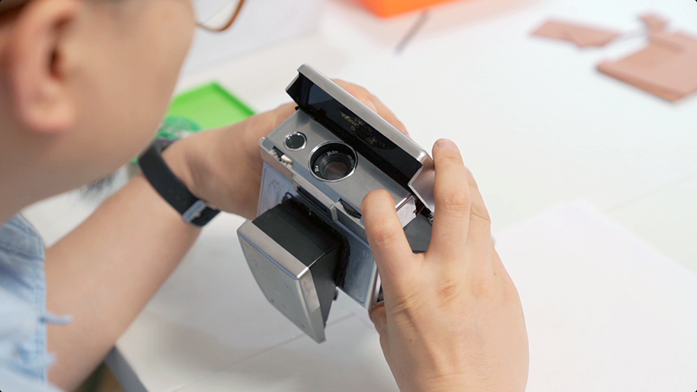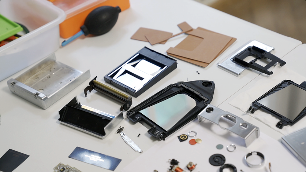 SX-70系列折叠机大致分成5个部分,机头、下巴、取景器、机背、机身。摊开来是这样的: