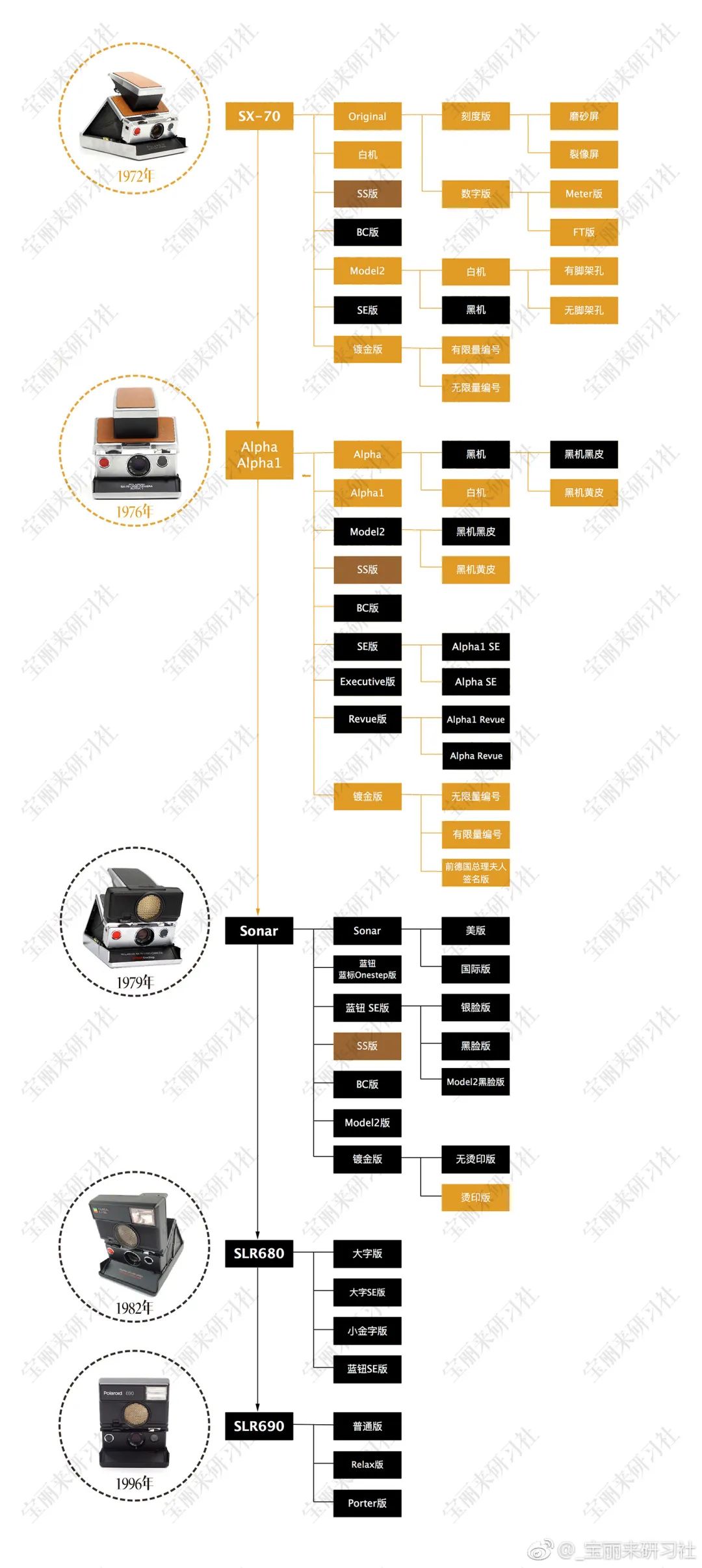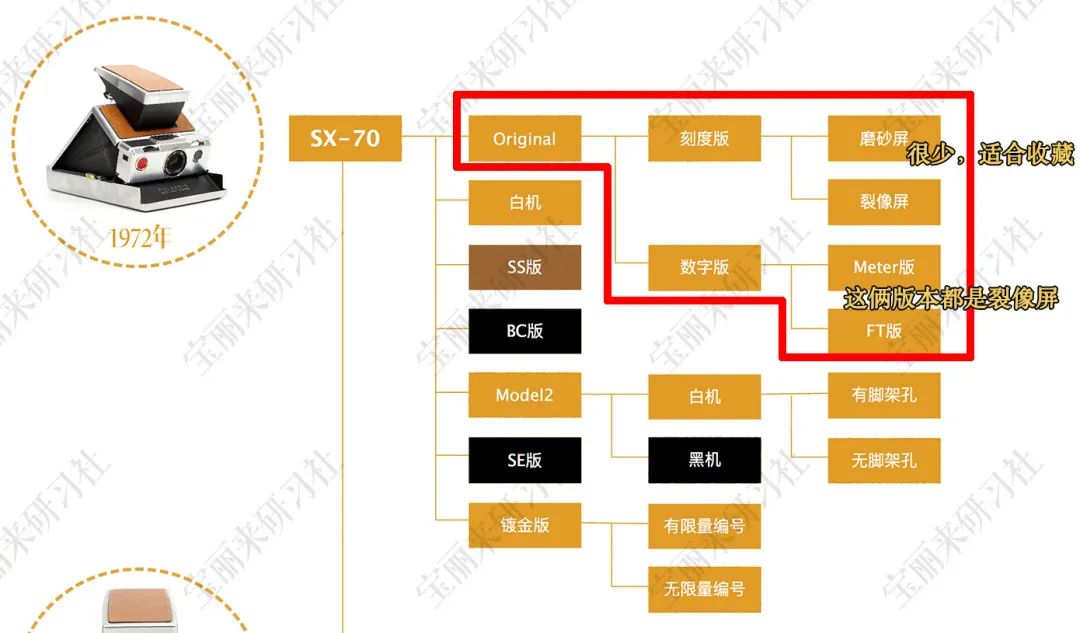 本文讨论的Original SX-70如下图圈出,简称Original或者O版70,出厂时间为1973~1976年: