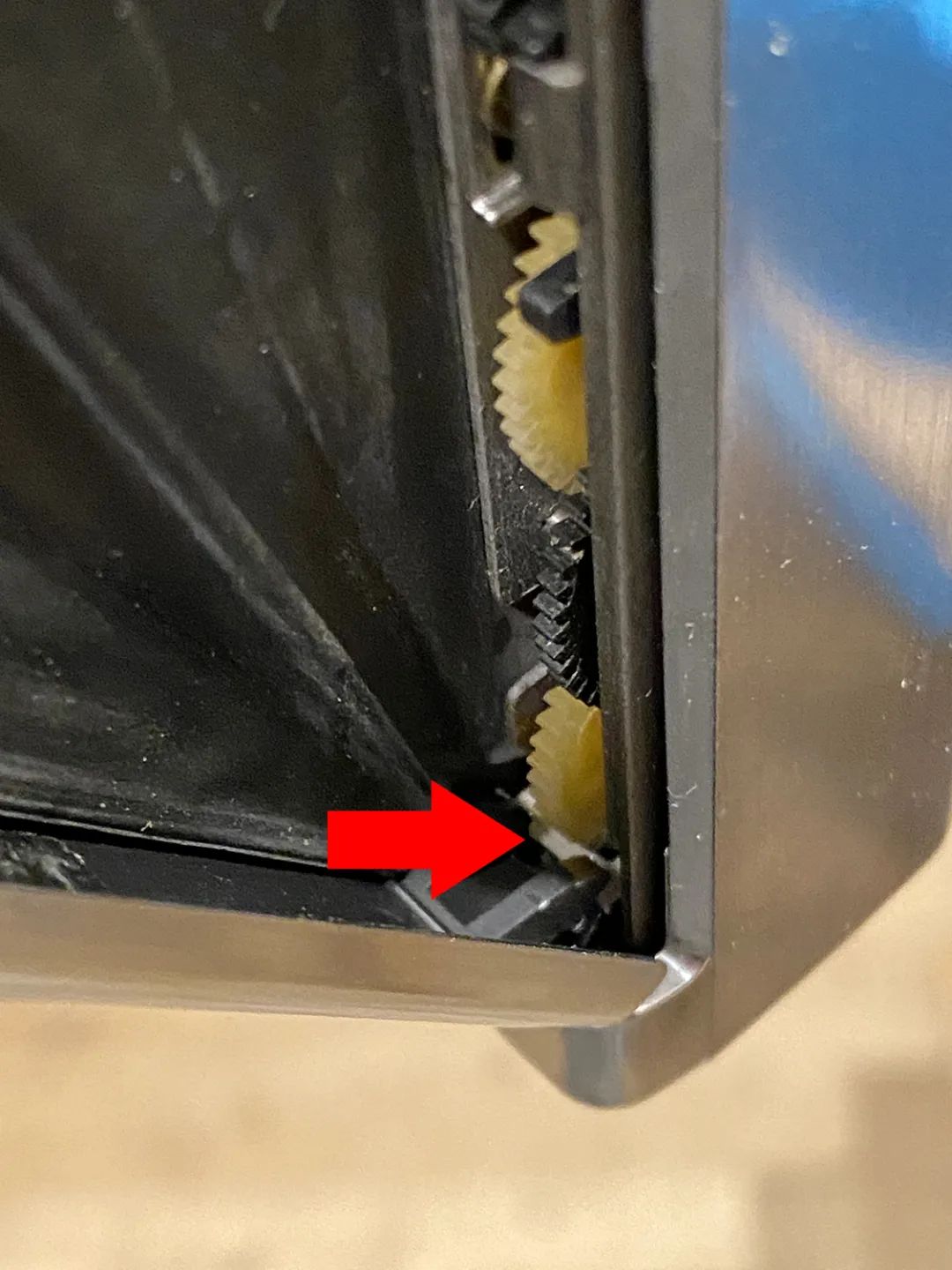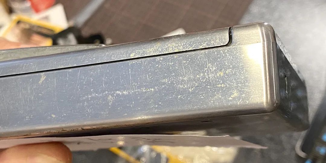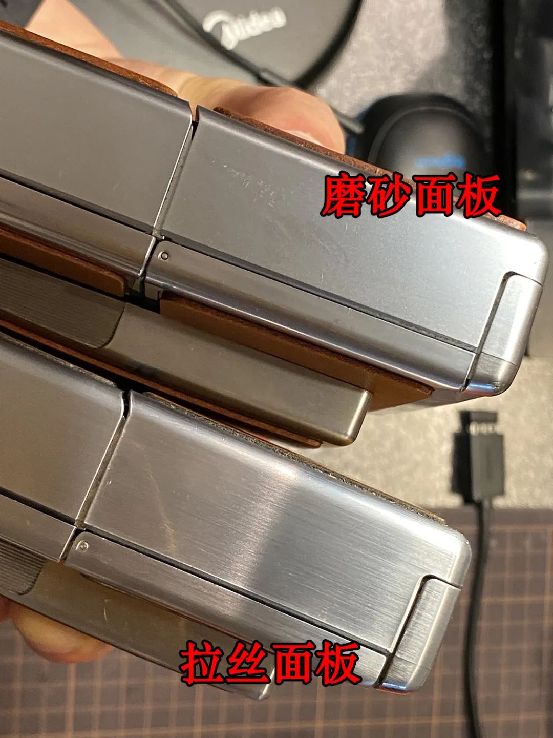 拉丝和磨砂只是电镀工艺上的区别,机壳里面都是塑料。拉丝面板确实不容易留指纹。但是拉丝面板锈起来就很难看了……而且很难弄干净。比如这样: