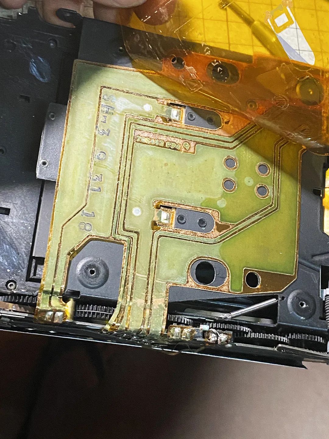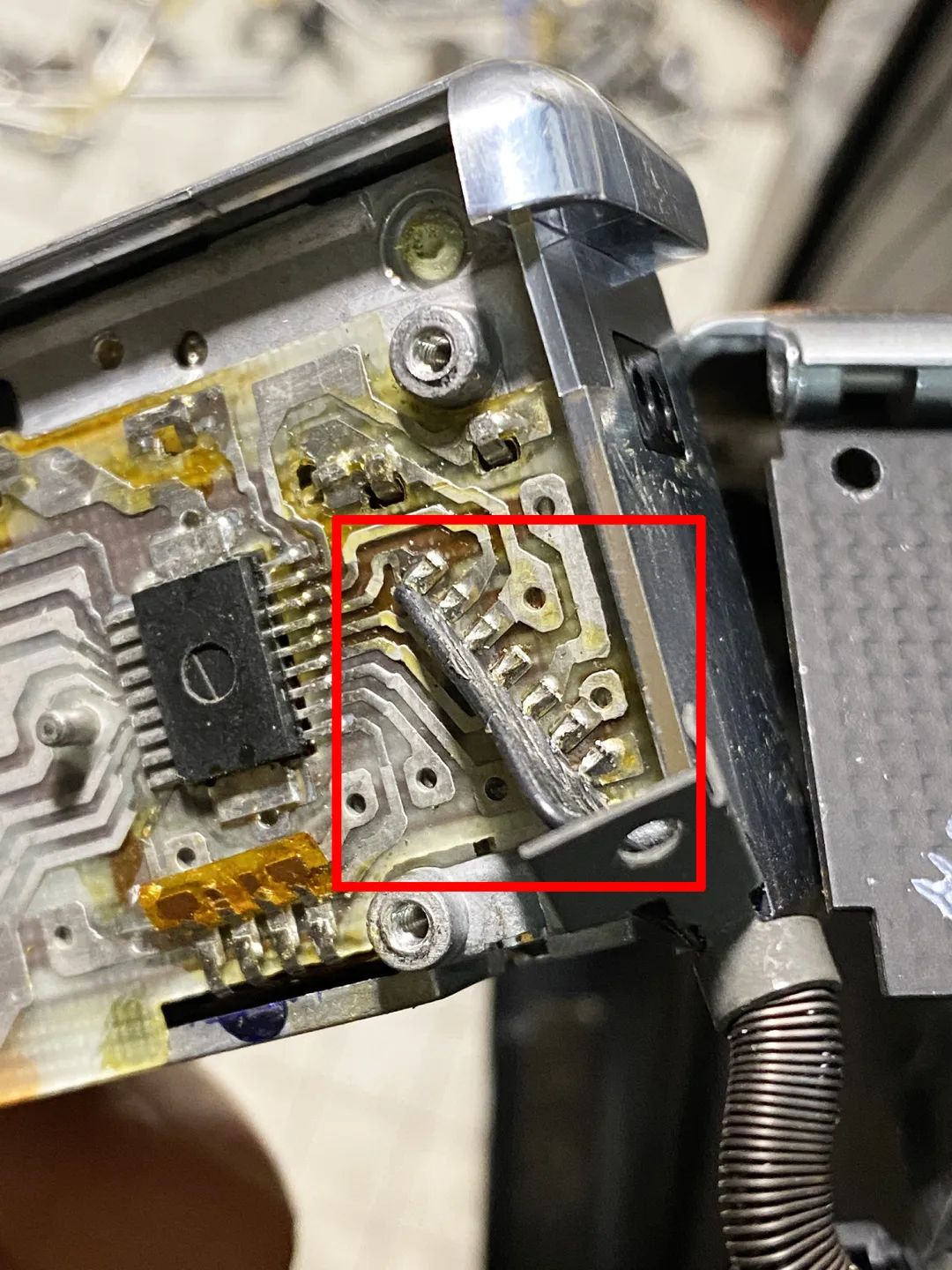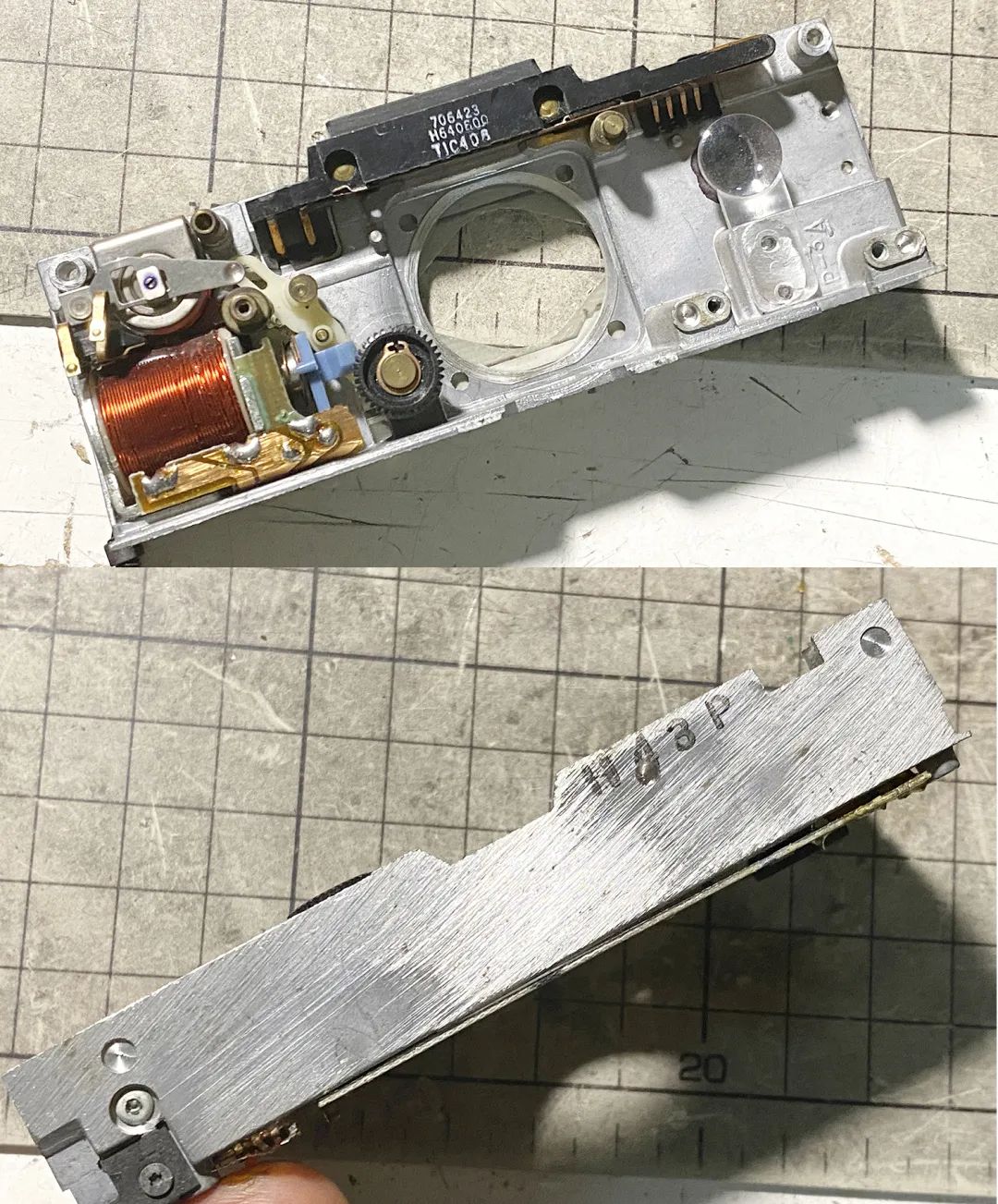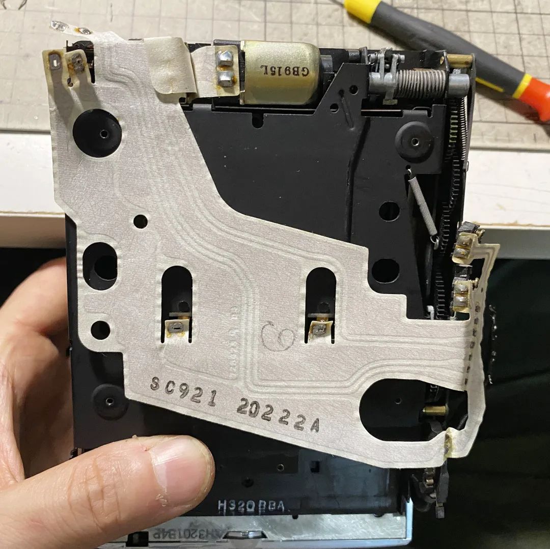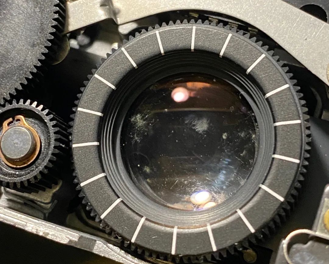 保存条件不好的刻度版70,金属筒的镜头座容易锈住,导致联动对焦轮无法转动,需要把镜头周围不少零件卸下来才能搞定。如果锈得很严重,需要先把电路板焊下来,然后才能把镜头筒整体拿下来拧开。