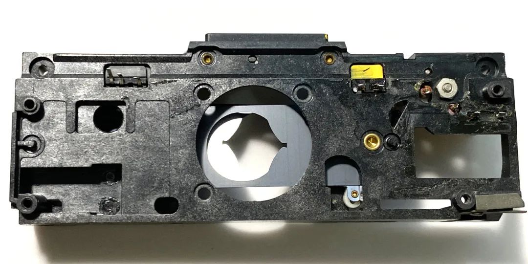 机头座、测光元件、四脚(光圈快门)电磁铁、光圈页片、金属镜头筒、胶皮排线、机身FPC电路板、塑料传动马达轴、马达MOS驱动器、机身连接法兰座。