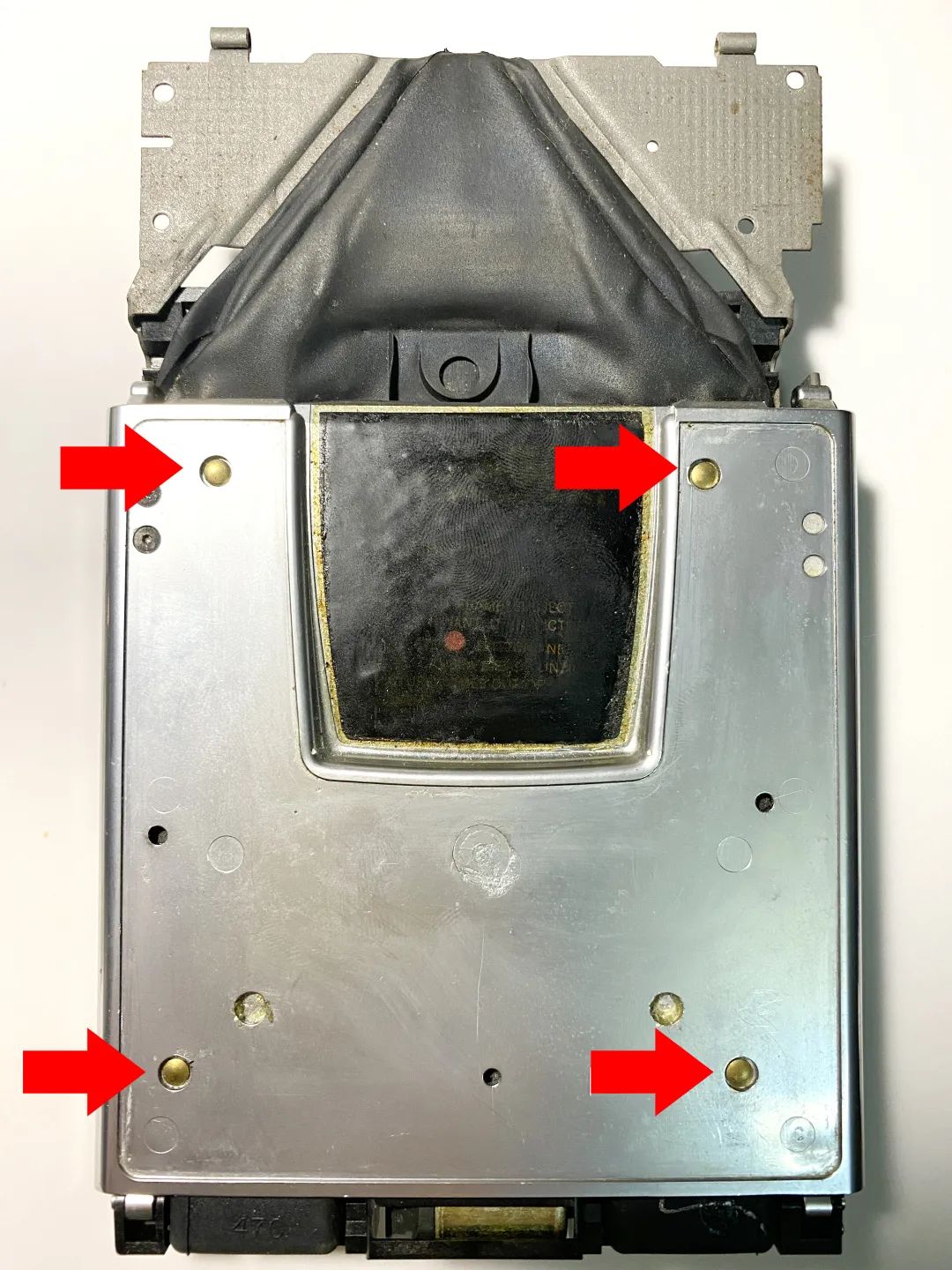 而刻度版70的皮腔是通过螺丝和背板连接的,可以拆下来。如下图,注意看相同位置是螺丝,箭头就不加了: