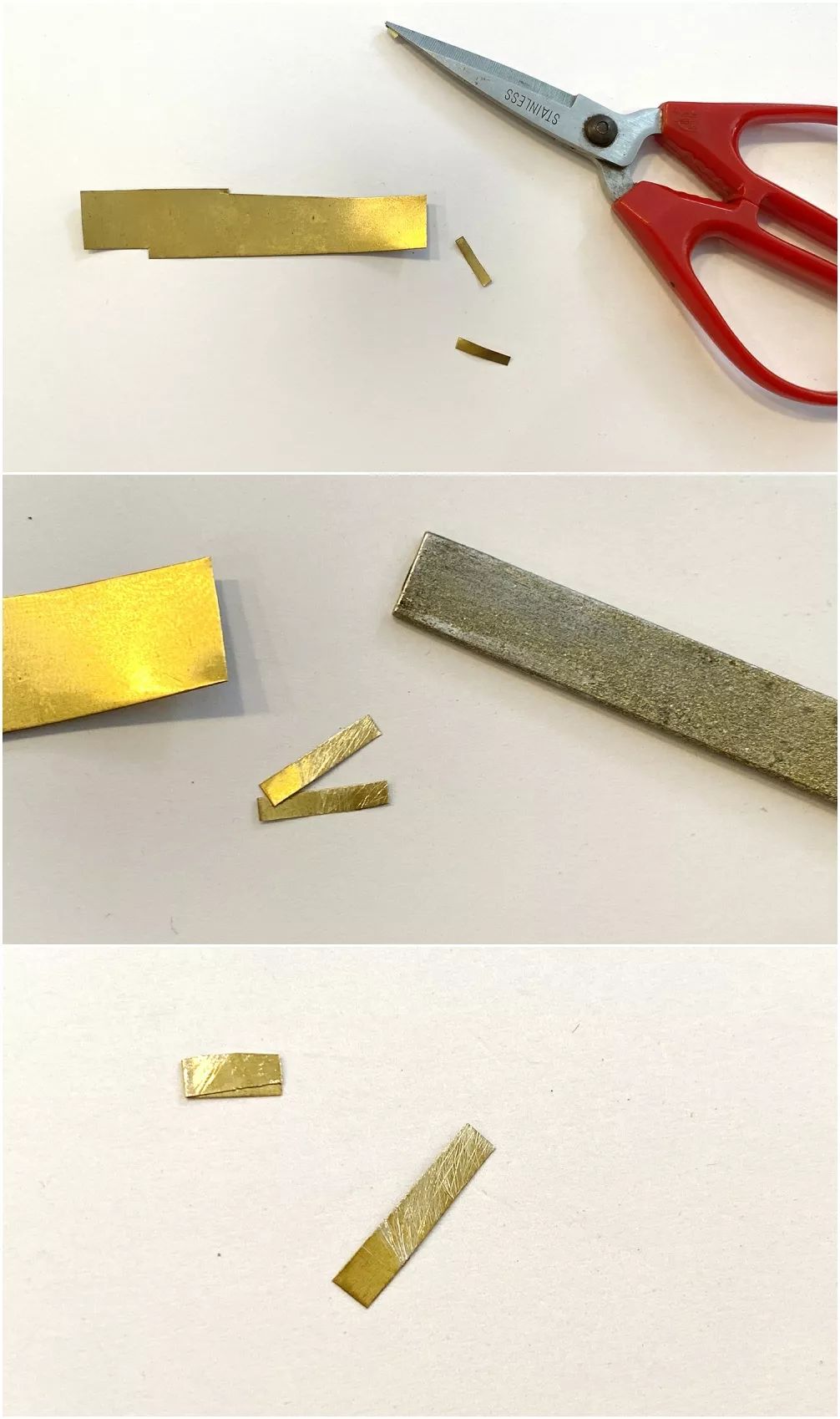 用剪刀剪下1mmX10mm和2mmX10mm左右的小片各一片。对折。