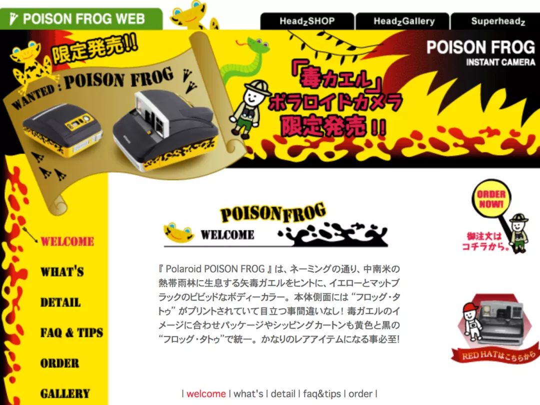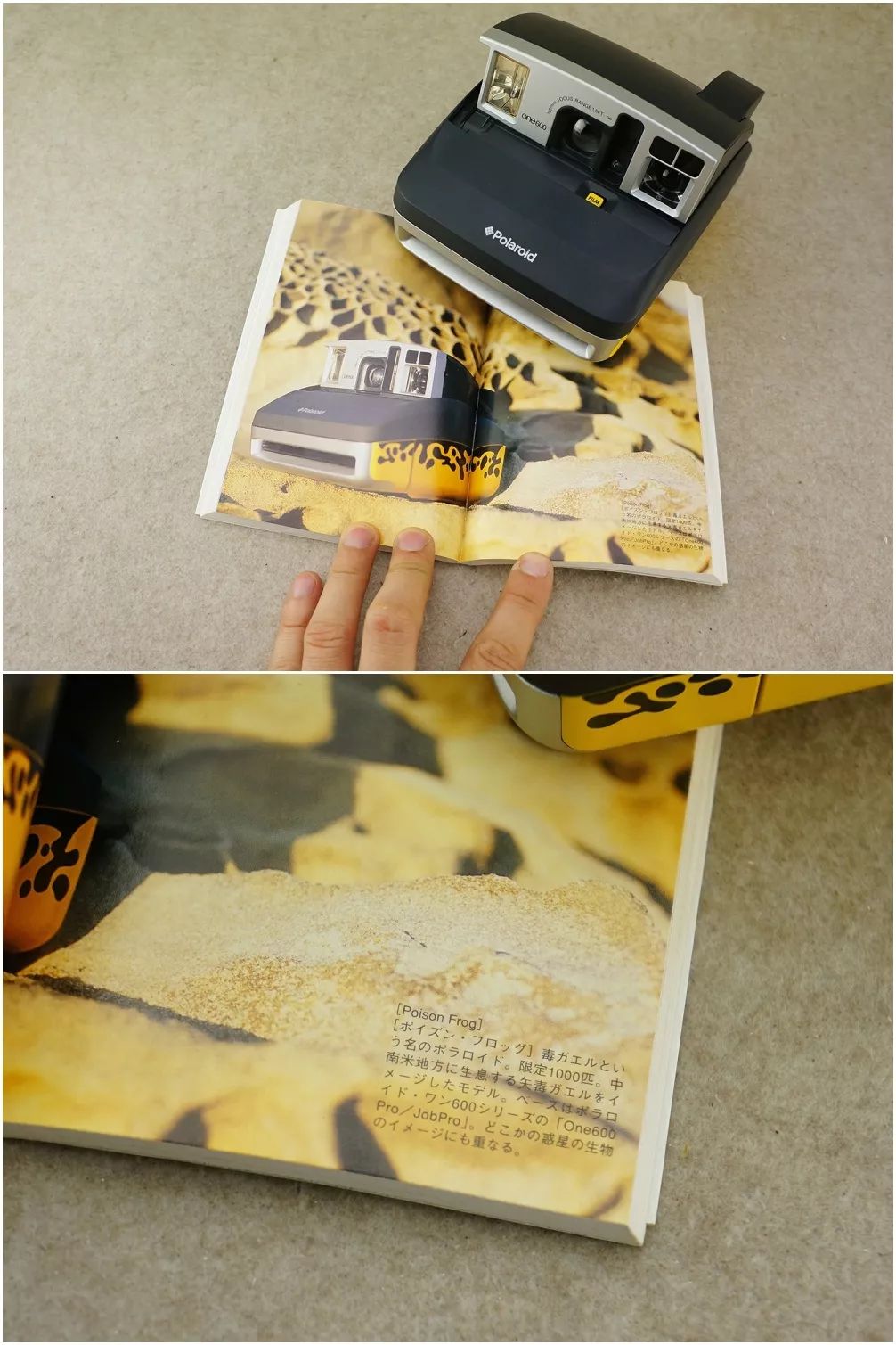 以毒蛙为名的宝丽来,限量1000台。以中南美洲所生活的箭毒蛙为印象做出的设计。原型是宝丽来One600系列的『One600 pro/JobPro』。也让人觉得有点像是来自于不知何处的其他星球上的生物。