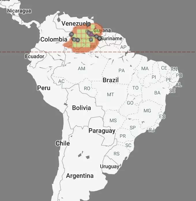 黄带箭毒蛙的分布范围: