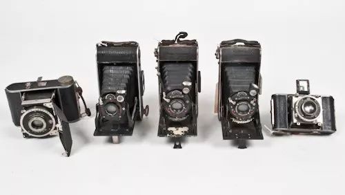 下面这些是福伦达皮腔机,不是宝丽来。一般建议搜索福伦达或者柯达皮腔机。它们比宝丽来更早期,体型更小,使用120底片。