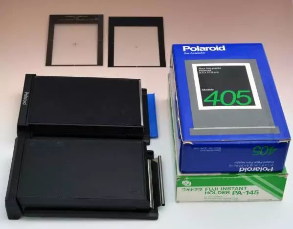 上Polaroid 550后背,下富士PA-45后背,两者通用。