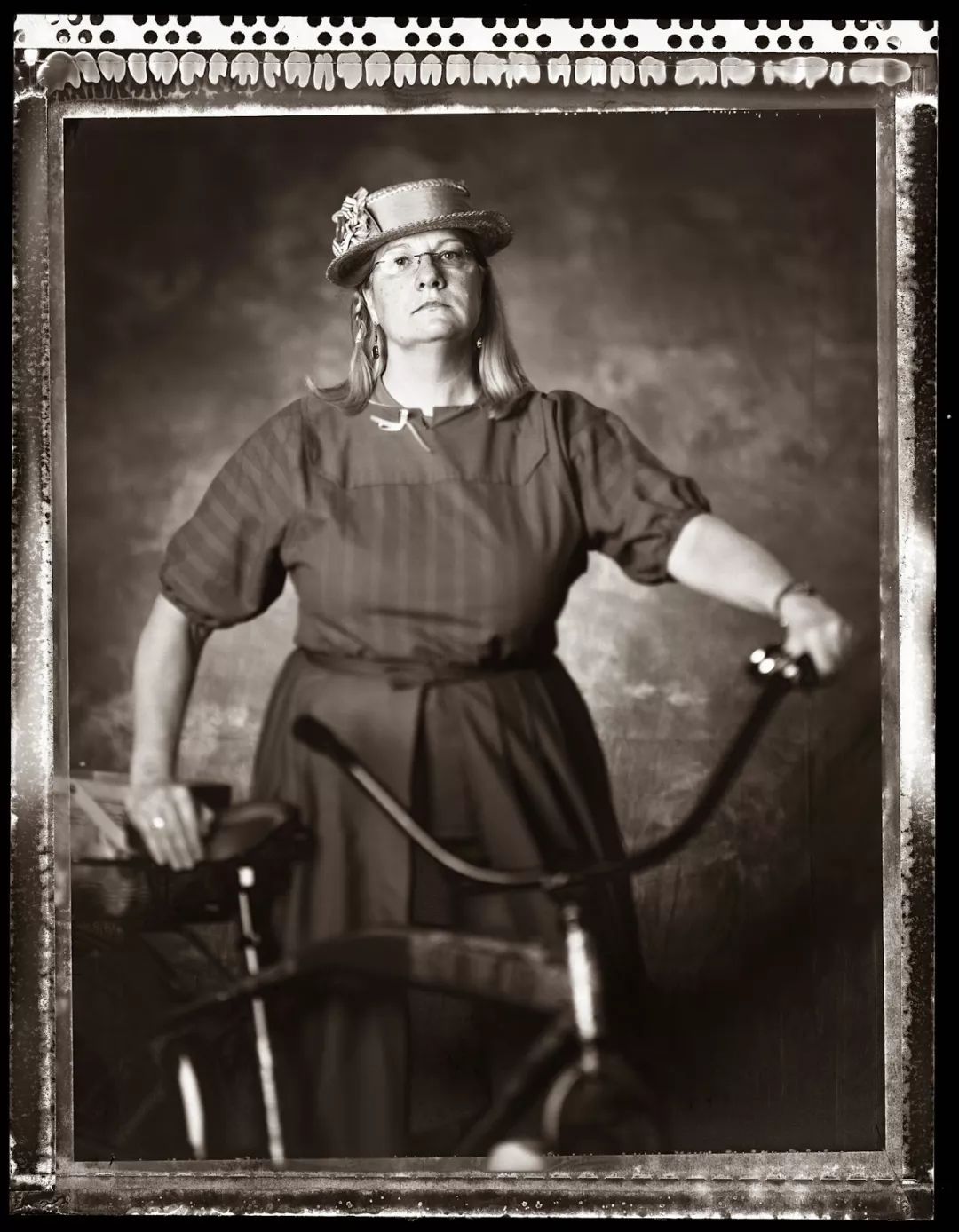 识别特征:照片半身大小。上下有黑边或者特别花好看的花纹。