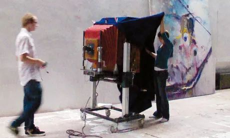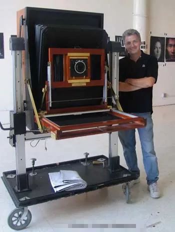 注意:这么巨的相机不一定是拍宝丽来的,也可能是拍湿版的。但如果你看到下面这样的,一定是宝丽来20X24了。