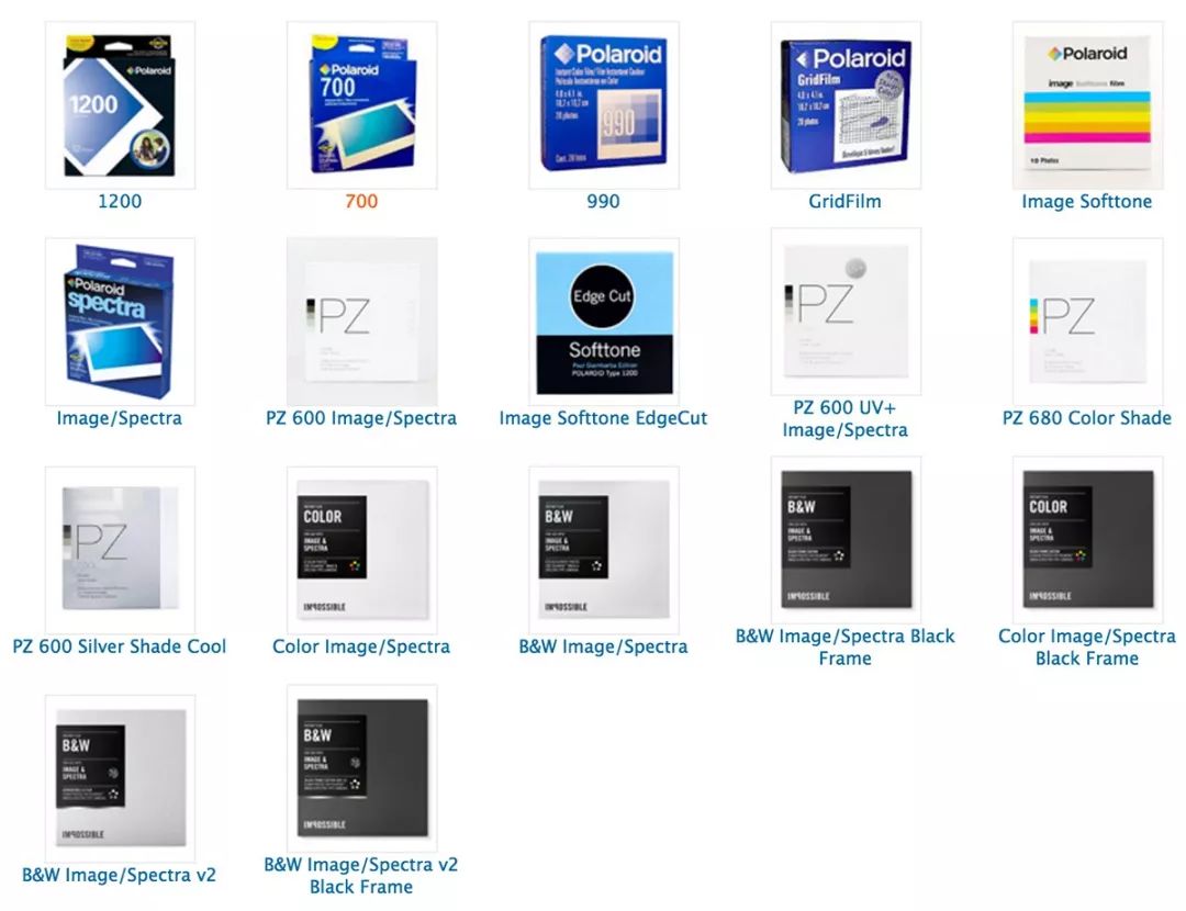 * 《Professional Photogarphy》Polaroid原厂相纸型号指南的链接(<<<此处有超链接)。