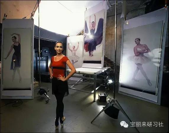 当天,这位优雅美丽的舞者透过一盏两万五千瓦的强大光源和一块12X12英寸的柔光丝罩,轻盈起舞,在麦克纳利和两位技师的共同努力下完成了七张成功的大幅宝丽来照片。麦克纳利当时使用了一台Mamiya RZ67引闪,在拍摄宝丽来40X80的同时也得到了一份6X7的底片。