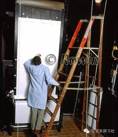 用“40X80英寸”描述画幅只是给各位一个大体的概念,实际上它所能拍出的最大画幅是:宽40英寸(约1米),长106英寸(约2.7米)。而这台相机则是完完整整的一间屋子:宽约3.66米,长约4.88米,高12约3.66米。有点像个车库。宝丽来40X80最初的用途是以其令人瞠目结舌的还原能力复制一些大幅画作,因此它就成了博物馆的常客,最后常驻于波士顿美术馆(Museum of Fine Arts, Boston)。于是它又有了另一个名字:博物馆相机(MuseumCamera)。