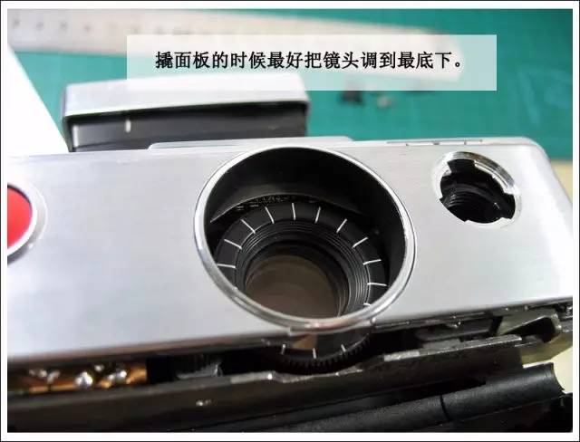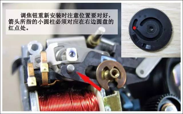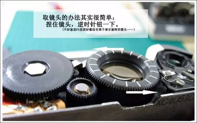 搞定之后就要把镜头重新装回去了。这个也不难。首先要把焦距旋钮取下来,办法如图所示。