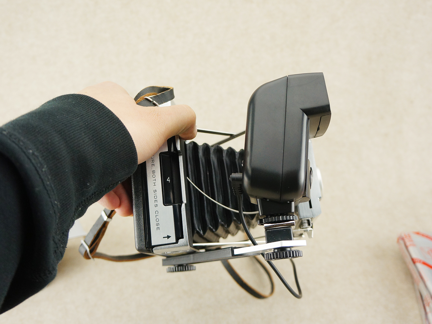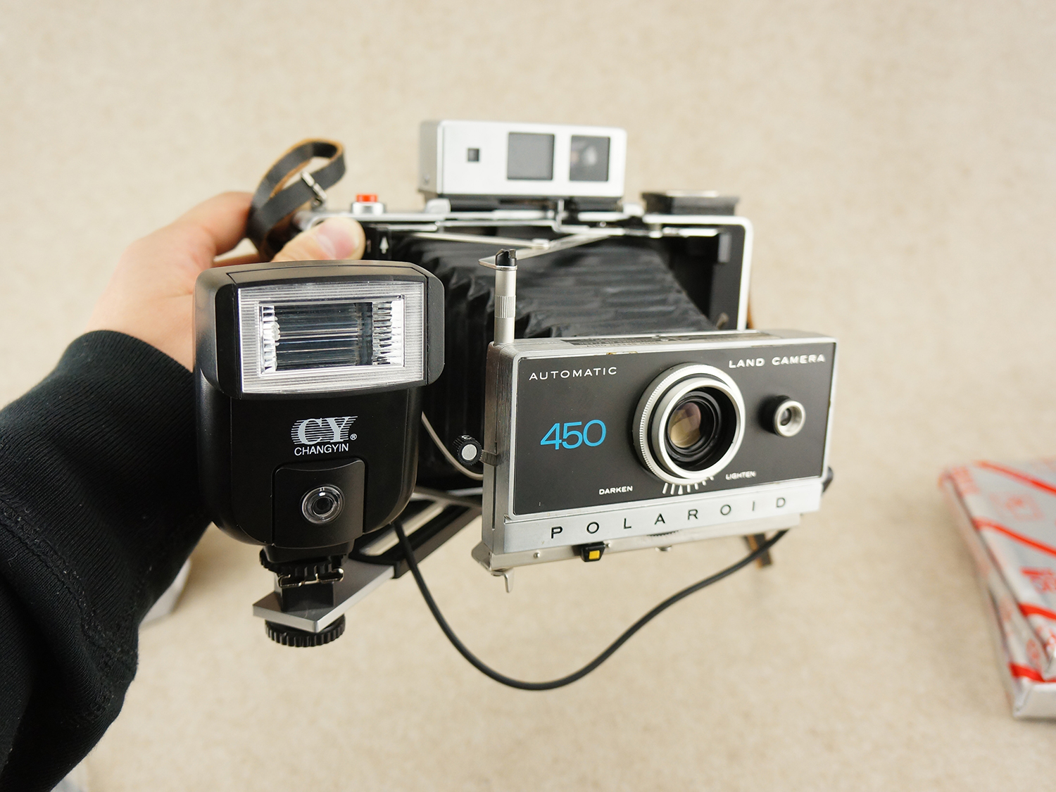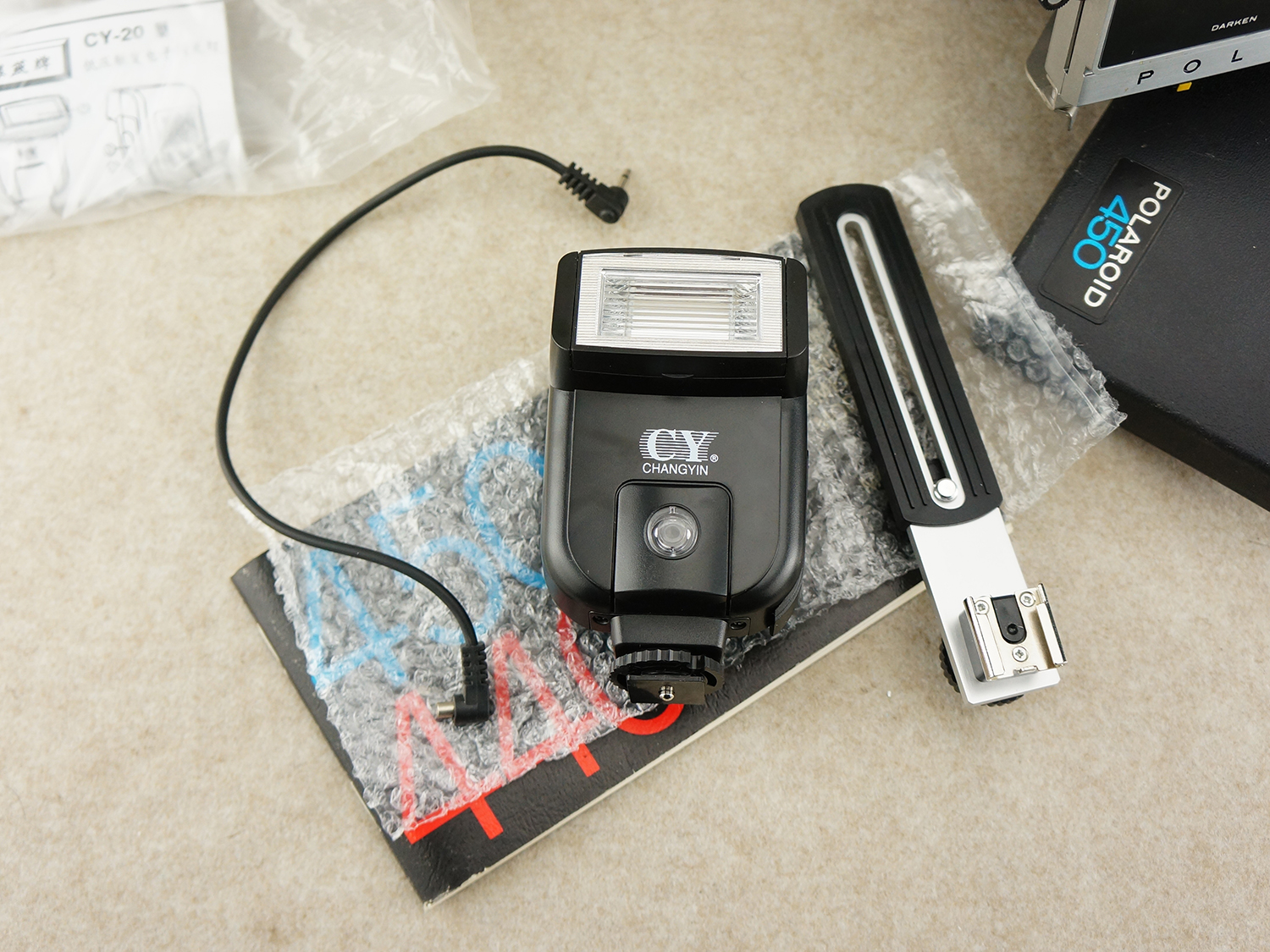 动风琴机最大光圈8.8,如果是用100度的FP-100C,除非上脚架长曝7、8秒,不然在晚上拍必然是黑片无疑(所以我不太建议新手在晚上试机,容易把自己和卖家搞死)。如果是用FP-3000B,虽然可以直接拍,但可能还是会有欠爆的问题,曝光补偿要调多少不太好把握。搞几个一次性闪泡玩玩那个268#蓝色闪光灯也不是长久之计,大众一点的办法就是另外再搞个外置闪光灯。