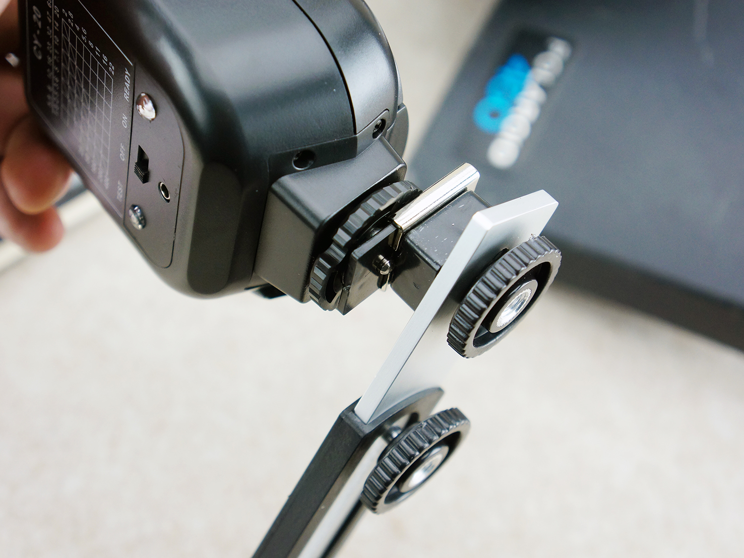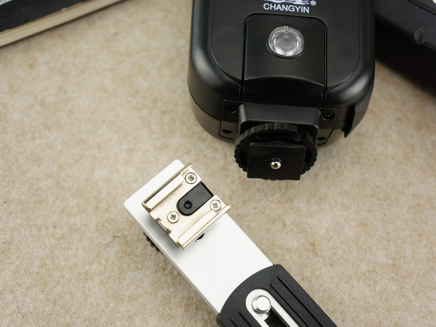 有些朋友不知道具体怎么操作,其实很简单,方法有二种,一种是搞个闪灯支架直接组装一下,一种是在机身上改装一个热靴。