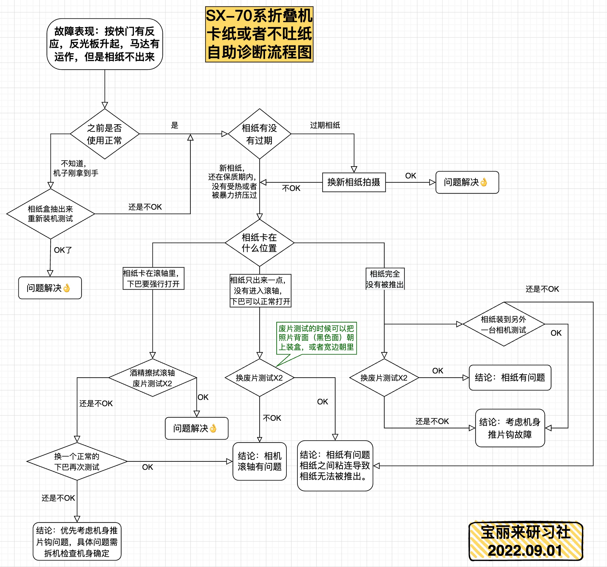 SX-70卡纸是维修的重灾区,很多玩家面对卡纸不知道怎么处理,我们简单梳理了一下检查流程,希望能帮到大家。