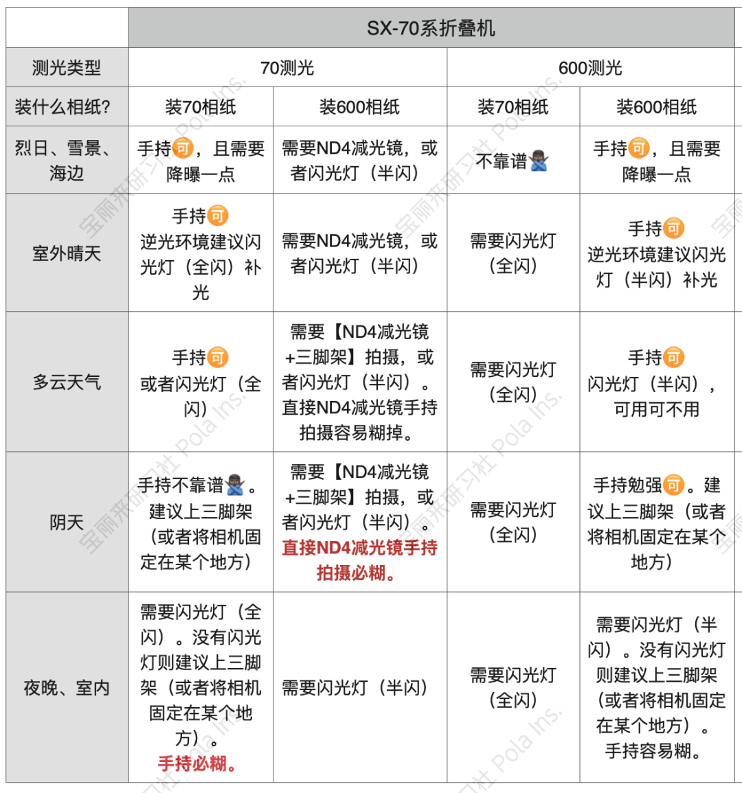 以上。一个很关键的知识点:SX-70+闪光灯,快门速度会变成固定速度,光圈大小只受拍摄距离影响(近小远大)*,闪光灯强度又是固定的(对应70相纸600相纸分为全闪半闪),是一个经过设计的、绕过了机内测光的拍摄模式。