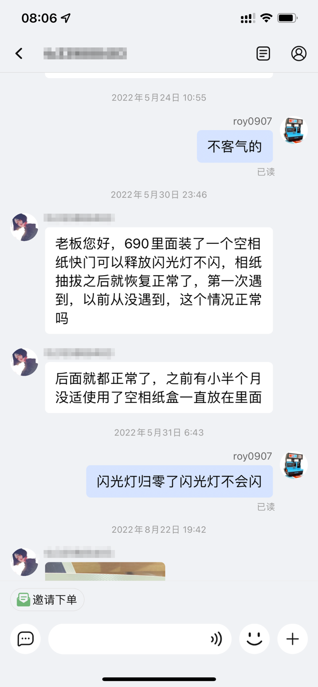 4、计数器归零之后,不抽出相纸盒,相机已经切换到放空模式(也可以称为贤者模式),如果继续按下快门,相机还是会有反应的,反光板正常升起落下,但是快门速度会变成固定速度,并且不会触发闪光点。