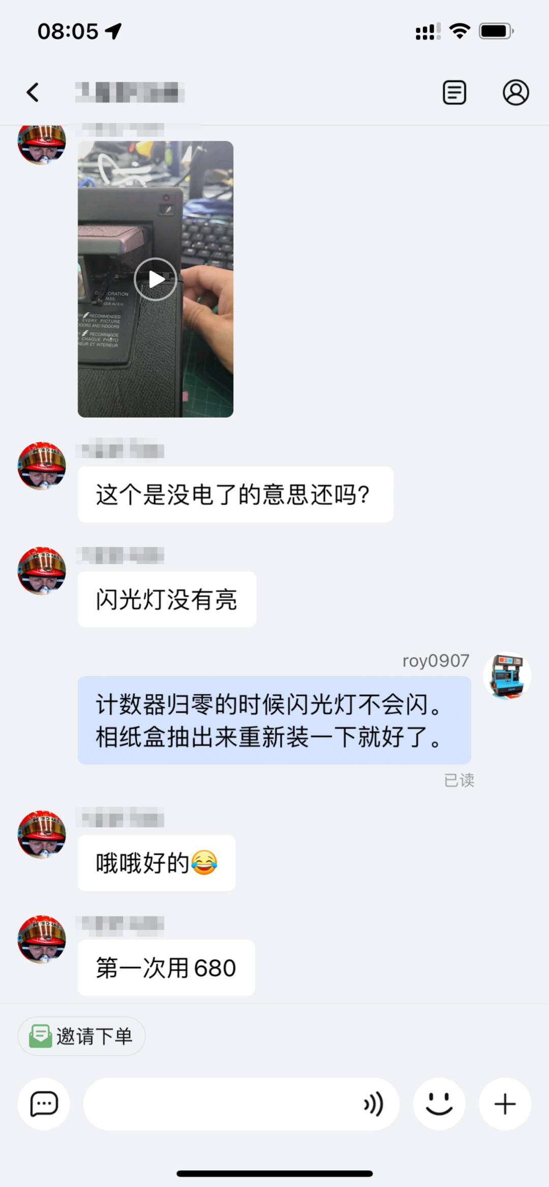 彩虹机、600系相机这些低端机就没有这个功能了,计数器归零后无法触发快门,宽幅机也一样,不但按不动快门,并且还有提示音提醒你要换相纸盒了。